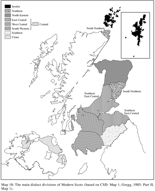 Speitel and Mather (1968: 522ff.) offer a chronology of the spread of Scots into peripheral areas:
