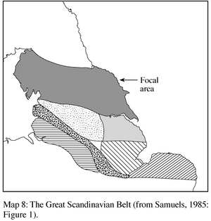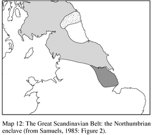 [38] To the extent that Thomason and Kaufman (1988: 71) have suggested that ONhb is not the principal ancestor of the English dialects north of the Great Scandinavian Belt, a suggestion parallel to that made for Scots (above).